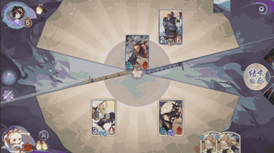 敌方酒吞童子拥有6点生命值,我们若选择妖刀姬出击则会在击杀酒吞童子的同时自己也陷入气绝,所以我们使用山童的“笨拙”形态牌,拖动山童击杀敌方酒吞童子。