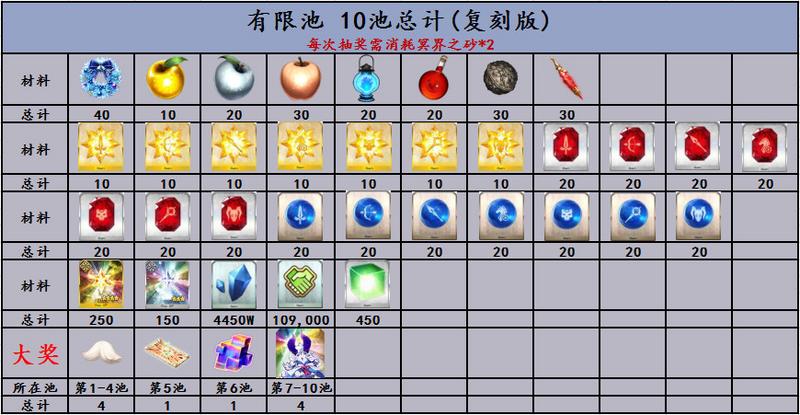 除了主线关卡外,本次轻量复刻活动采取有限池奖池形式(限量10池)。