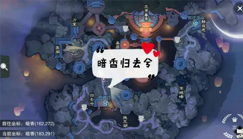 《一梦江湖》手游坐观万象每日修炼坐标汇总