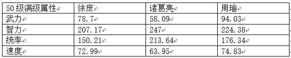 从以上属性对比可以看出,徐庶作为智力武将,其智力属性比起1线智力武将来说,还是有一定差距。其余属性和大部分智力武将相差不大,统率和速度属性都较为优秀。故而在谋略队中,徐庶一般作为次主力输出和辅助武将登场。