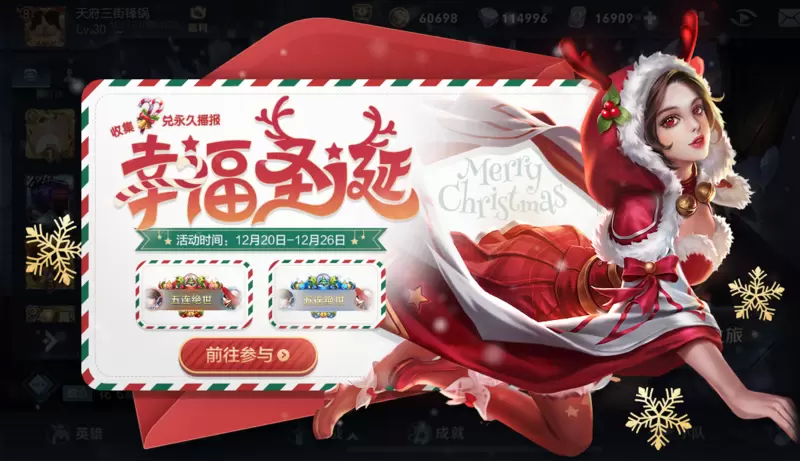 祝各位召唤师们圣诞快乐!参与游戏内活动送永久荣耀播报!