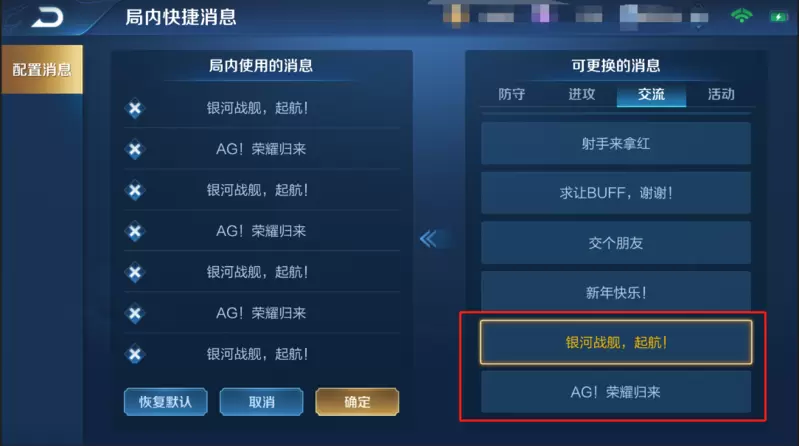 5、【为冠军助威】快捷消息限时使用
