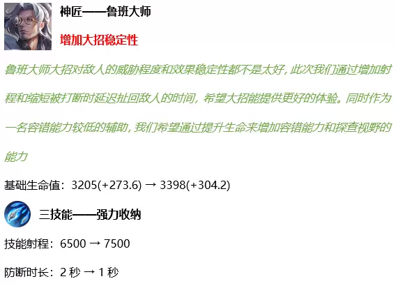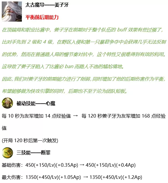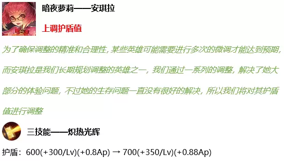 大招伤害从1000/2000/3000(+100%法术加成)上调到1200/2100/3000(+105%法术加成)