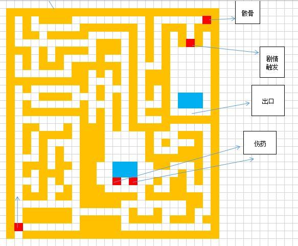 有地图在的情况下应该能很容易获得两个道具,获得道具之后到达出口进入下一个房间,地图见下方。