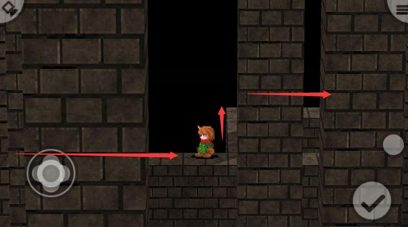 回到第二个房间的这个位置,沿着箭头和路一直向右跑,跑到第三个房间。