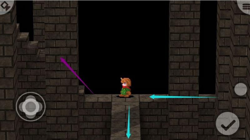 在下一个房间这里,如果沿着紫色箭头向上跑会回到第一个房间的右边,这些房间都是相互连通的。