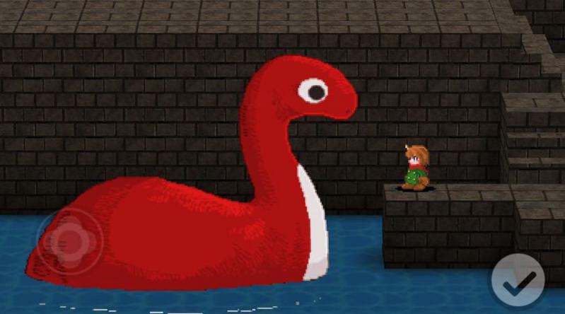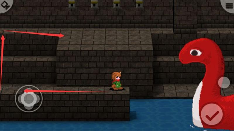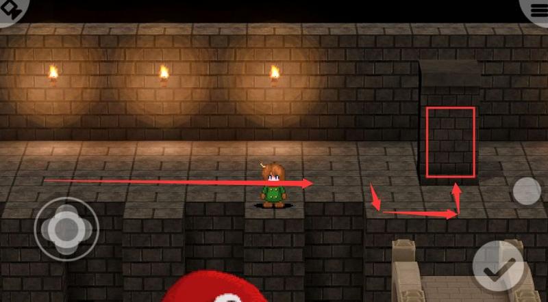 在第二个房间中,水怪被桥挡住了去路,来到这个柱子这里,发现有一个隐藏开关,向下拉动,第一个障碍便被我们解决了。