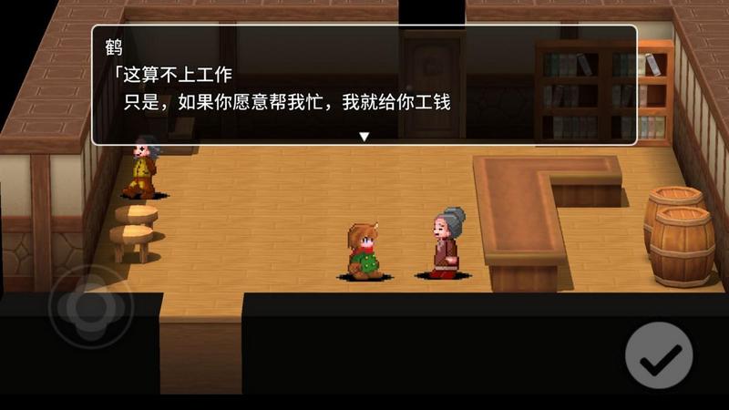 接下来回到旅店与“鹤”对话,即可交付任务。交付任务后会被传送到旅店门口,此时“鹤”会进入bug状态,再次交给我们第一个采蘑菇的任务,此时就算再去湖那边去也找不到蘑菇了,所以这里不用管她了。