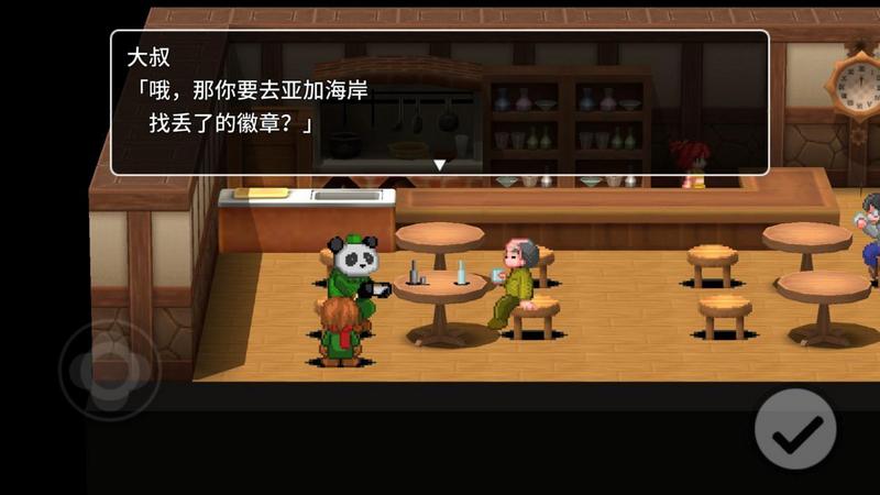 回到酒馆,熊猫人“文龙”已经离开了,看来徽章只能由我们勉为其难的收下啦!