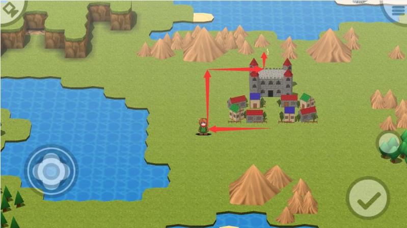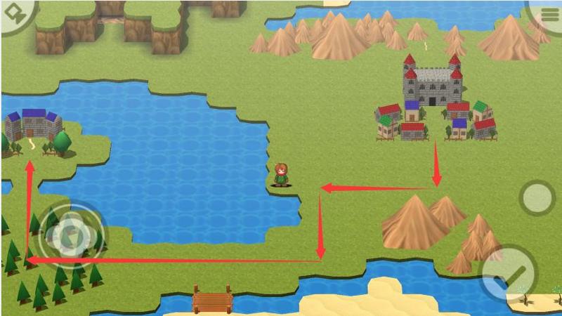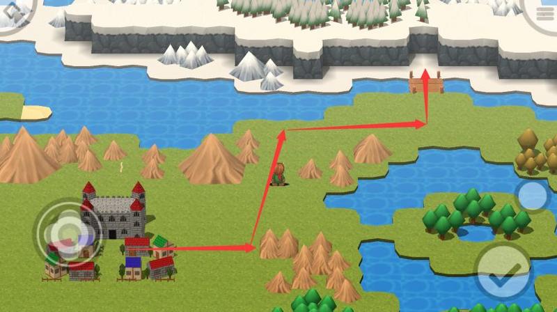 那么沿图中箭头出发,我们先朝向游戏中最大的城镇“亚加鲁卡城邑”前进吧!