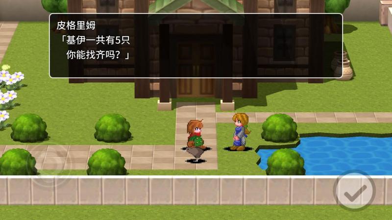 在亚埃尼卡右边的池塘前有一位和基伊站在一起的少女,与她对话,少女表示想和你玩个游戏,寻找基伊的游戏!