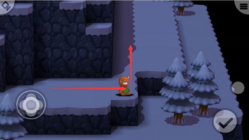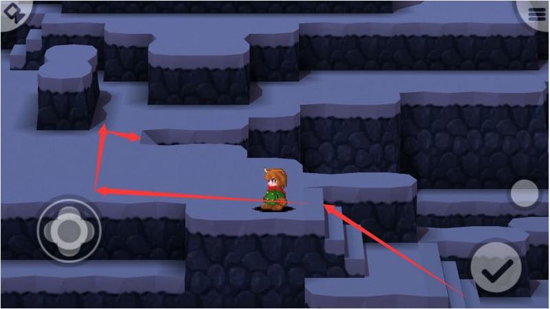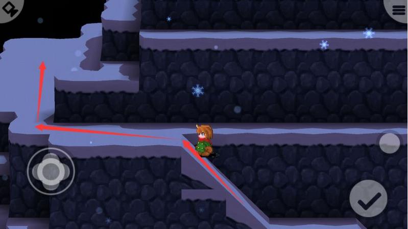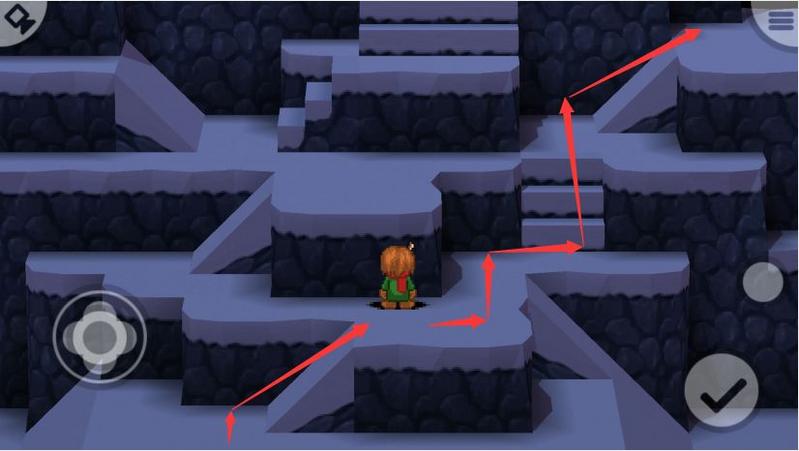 出现台阶后,一直向上,然后按下图位置向左。