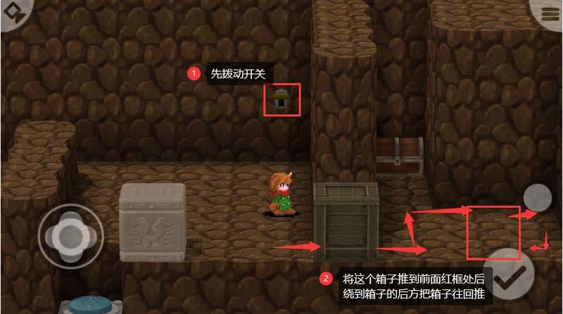 进到古代遗迹内部后,直接先把面前的箱子推到坑里开路。第二个箱子也如法炮制。