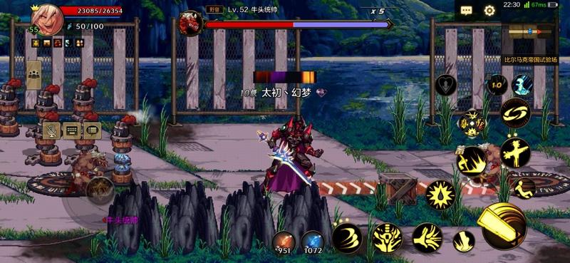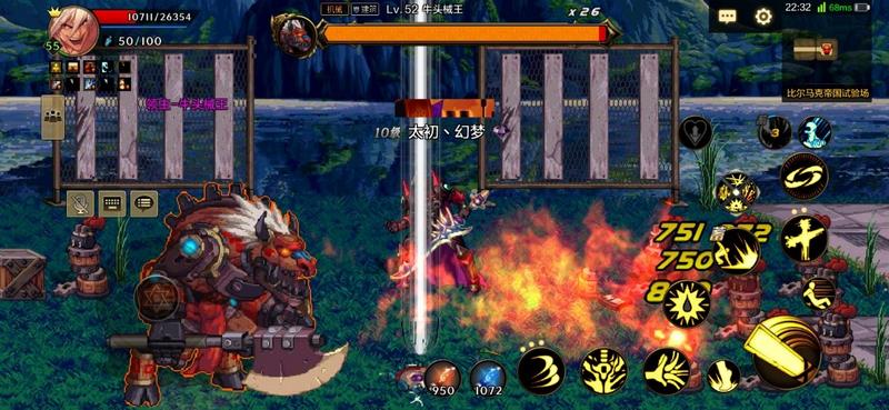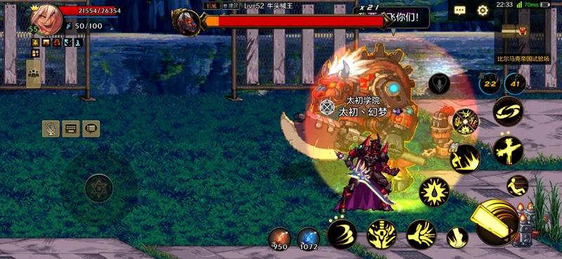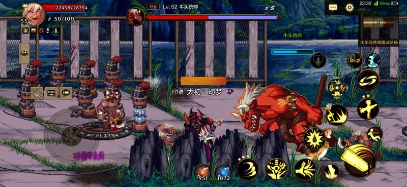 场中还是由左右两边的柱子召唤幼小牛头,还有一个精英怪牛头统帅。如果玩家在怪物面前一条线的话,就会发起直冲攻击,被精英怪攻击到会造成短时间眩晕效果。