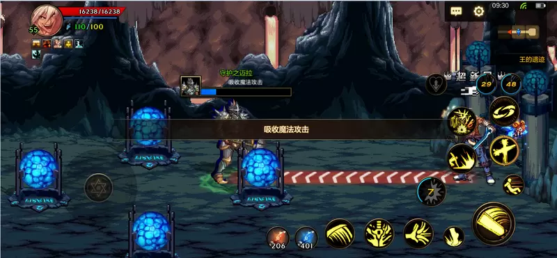 过关技巧:在读条进行到吸收魔法攻击时,玩家利用物理攻击进行输出,魔法攻击会造成回血效果,利用好技能的伤害方式才能事半功倍(物理还是魔法攻击)。