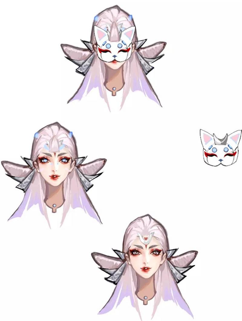 在发饰设计上,以猫咪耳朵的外轮廓,作为貂蝉发饰的大体外形。