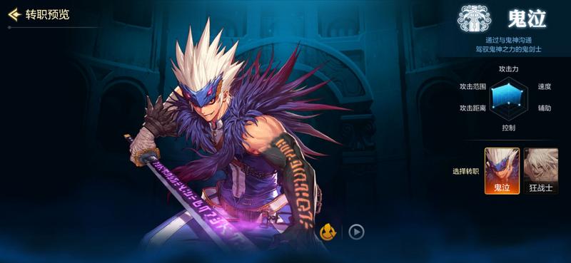 俗称小黑,身穿布甲,走路潇洒,虽手持太刀却是一个不折不扣的暗属性魔法攻击型职业,更是一直在和狂战士一较高下!鬼泣虽然定位为辅助职业,但是由于各种鬼阵的加成和对敌对的减益,无论是世界BOSS的排名还是刷图的效率皆在狂战之上!但由于BUFF技能过多且属于低防的布甲职业,需要一定的走位技巧!但是技能的高爆发能力也是不容小觑!!(对狂战的口号:你霸PK我霸图)
