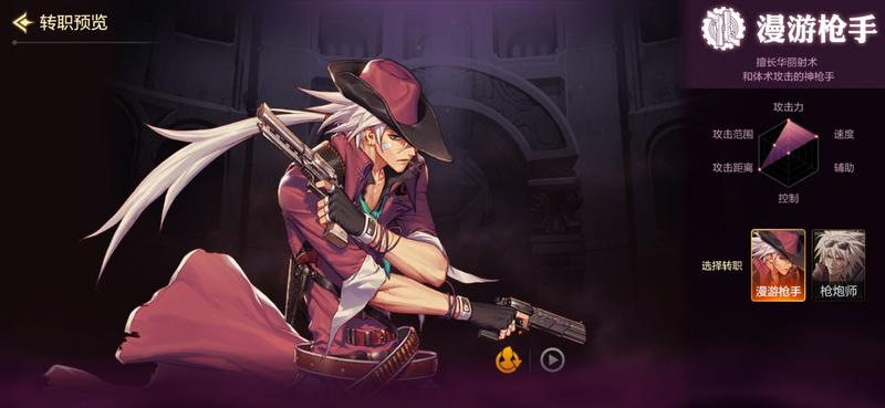 俗称鳗鱼,中近距离攻击职业!在游戏中拥有着极高的人气,靠着无冷却时间的神技“滑铲”来无影去无踪!而且伤害也是爆表!一但被漫游枪手缠上想落地都难!游戏中漫游枪手无论是操作还是技能都堪称华丽,堪称指尖上的舞者!漫游枪手就像他的名字一样充满了不羁,路不靠走,靠滑!操作不靠浪,靠秀!漫游枪手的入手难度不高,但想要输出最大化还是需要通过不断的练习!否则往往在你去秀别人的同时也容易把自己秀死!