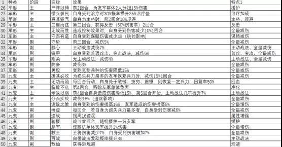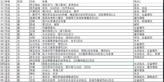 经过对绝大部分主力武将的梳理汇总,目前整理出来作战系5主6副、虚实系7主6副,军形系6主6副,九变系6主7副,难免遗漏,欢迎批评指正。