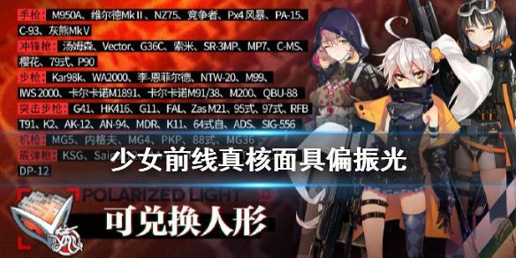 少女前线真核面具偏振光可兑换人形一览。少女前线将在1月16日开启冬活偏振光,本次活动的真核面具可兑换人形也已经公布。那么接下来就让我们一起来了解一下冬活偏振光可以换哪些人形吧。