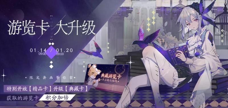 活动期间,精品游览卡可以用300勾玉升级到典藏游览卡,获取的游览卡积分翻倍(仅签到、今日委托、天梯、怪谈研习社、有个牌局)