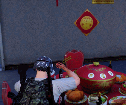 游戏中年夜饭的位置一般都会在城区的位置,玩家可以前往游戏中比较大的城区,在城区中寻找挂着红灯笼和鞭炮的房屋,此类房屋中就会有丰盛的年夜饭,打开年夜饭房屋的门,进入之后可以在房屋中间看到一桌丰盛的年夜饭,靠近年夜饭点击“吃团圆饭”即可获得丰厚的游戏物资,在食用年夜饭的时候也要注意其他敌人的偷袭。