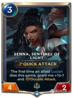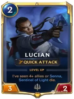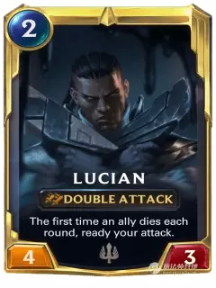 本局游戏友方卢锡安首次阵亡时,给予我+1/+1和双发。