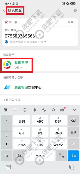 1、打开手机微信,在右上角点击搜索,输入【腾讯客服】,选择腾讯客服小程序