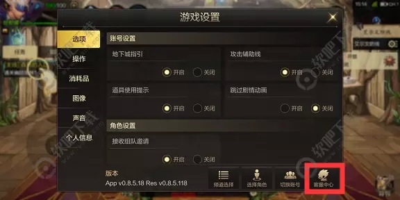 2、在【游戏设置】-【选项】界面,在右下角选择【客服中心】