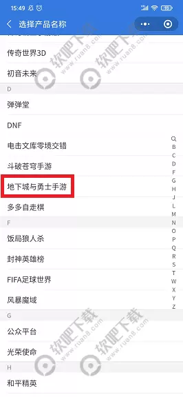 3、在出现的游戏列表界面,选择【地下城与勇士手游】,选择对应的问题类型,点击提交即可