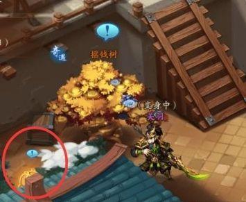 马镫在地图最左边的屋檐下面挨着摇钱树