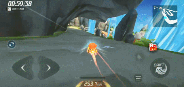 在前一个弯道入弯时,我们可以把入弯的角度拉大,避免赛车往赛道的中间靠,同时利用断漂补气的技巧,集满两个氮气,这样咱们在走这条下坡路的时候,就能保证效率与速度了。