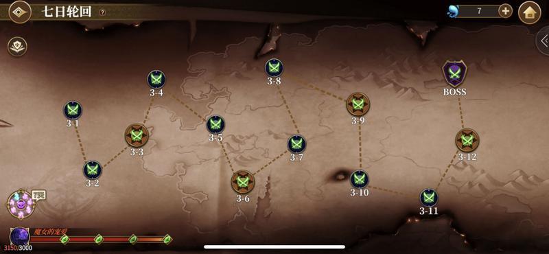 首先,将13关完全攻略所得魔女的宠爱共计1820,即2x(1+2+3+…+12+13)x10=1820,因此想要获得所有原谅石还需1180点魔女的宠爱,所以,全通关后要 使用一个c(输出)带两个辅助(工具人)的模式去刷前面的关卡。