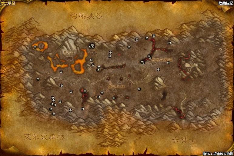 燃烧平原 (40个矿点), 冬泉谷 (38个矿点), 东瘟疫之地 (29个矿点), 安戈洛环形山 (23个矿点), 艾萨拉 (23个矿点), 奥特兰克山谷 (11个矿点), 西瘟疫之地 (5个矿点), 菲拉斯 (3个矿点), 厄运之槌 (2个矿点)。