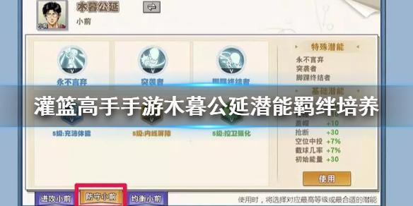 以上就是灌篮高手手游木暮公延潜能羁绊培养技巧,希望玩家会喜欢。