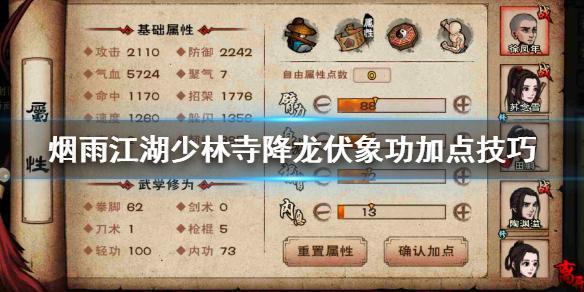 烟雨江湖少林寺降龙伏象功加点技巧