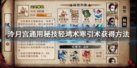 泠月宫通用秘技轻鸿术寒引术获得方法