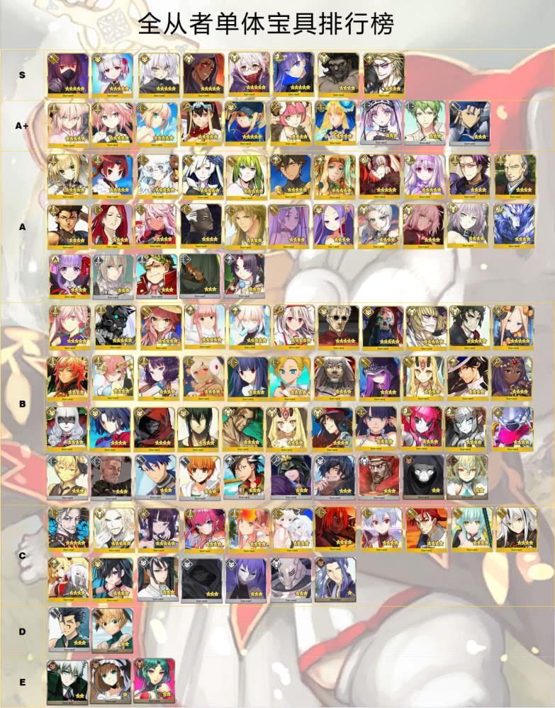 单体宝具排行榜近期的变动只有三星从者恺撒的宝具本。恺撒的宝具本可以说大幅提高了其伤害上限,在低血量情况下最高能够给宝具前置50%的攻击力加成,因此从B晋级为A和一票强力单体剑阶同分也不为过了。