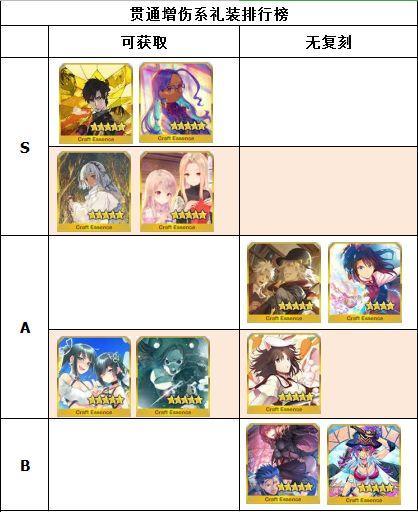 注:此排行为贯通、必中以及伤害附加等效果礼装的排行榜,一般用于对策效果。
