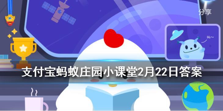 以上便是小编为大家整理的2020年2月22日的支付宝蚂蚁庄园今日答案了,希望对大家有所帮助!