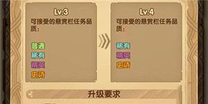 悬赏栏也可以升级,每次升级之后可以获得的任务也会响应的增加任务品质,悬赏栏升级的要求就是完成悬赏栏任务的个数
