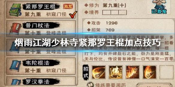 《烟雨江湖》少林寺紧那罗王棍加点技巧 紧那罗王棍9重解锁加点方法