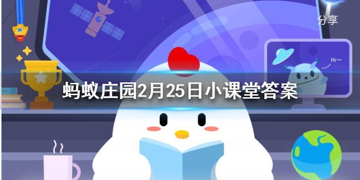 以上便是小编为大家整理的2020年2月25日的支付宝蚂蚁庄园今日答案了,希望对大家有所帮助。