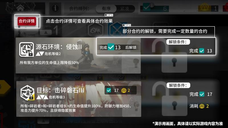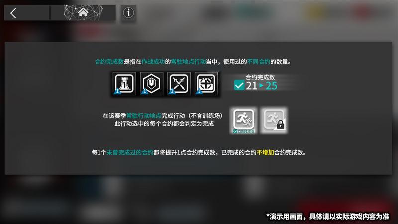 常驻行动地点内的合约解锁需要消耗【行动协议】,部分合约解锁需要满足对应的合约完成数量。