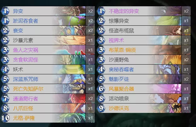 这套没有明显的优劣势对局,全看自己的牌序和进化的结果,只是打奇迹法至暗术这种环境限速器稍显乏力,冰帅建议可以酌情将八爪巨怪换成洛欧塞布~