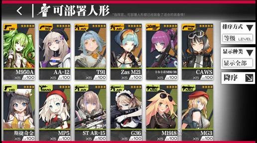所有可部署人形编制均为5,等级均为100级,且都已装备适宜的装备。