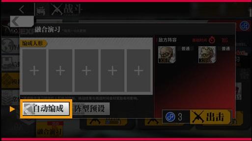 指挥官可通过自动编成按钮,上阵系统默认梯队进行融合演习。
