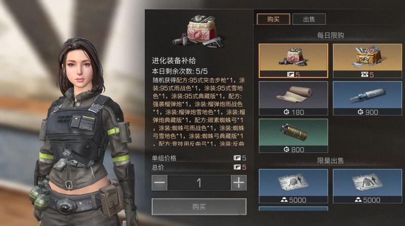 在快乐101和营地的武器店处,每5张进化装备金券即可兑换1份进化装备补给,每日最多可兑换5份。
