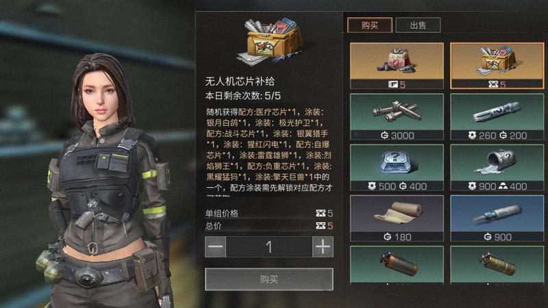 每5张珍贵的无人机金券可在快乐101和营地的武器店处兑换1份无人机芯片补给。每日最多可兑换5份。