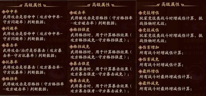显而易见,命中对应闪避,暴击对应抗暴,破击对应格档,那么,这些属性该如何有效搭配,才可以最大程度的提升我方战斗力呢? 答案当然是针对各国阵营的特性和武将的属性了,因此要么极限优势属性,要么补充短板属性,具体就看玩家自己的取舍了。